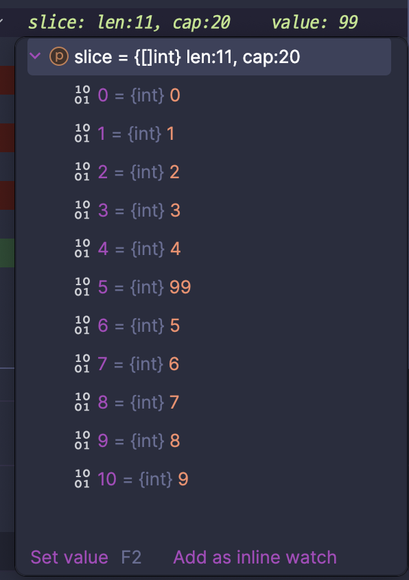 index:5 의 데이터가 99로 변경된것을 확인할 수 있습니다.