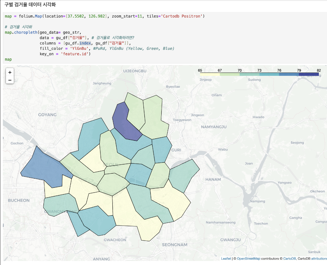 # geojson_file = json.load(open('seoul_geo.json')) # crime_map = create_crime_map(df, '살인', geojson_file)