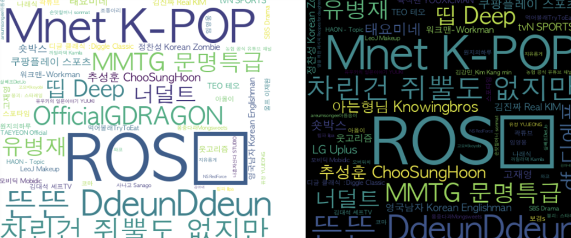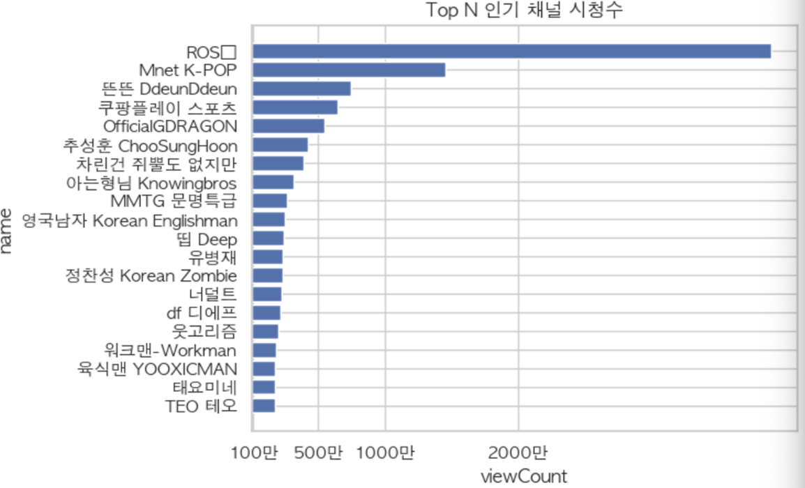 word_freq = {info['name']: info['viewCount'] for info in channel_infos}
