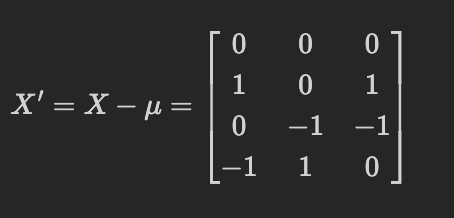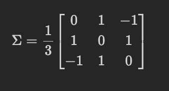 - 수식: $$\Sigma = \frac{1}{n - 1} (X - \mu)^\top (X - \mu)$$
