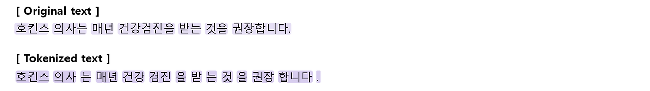 - 한국어 형태소 분석기를 통해 의미를 갖는 최소한의 단위인 형태소 단위로 문장을 쪼갠 뒤 모델이 생성한 문장과 정답 문장을 비교하여 ROUGE score를 산출