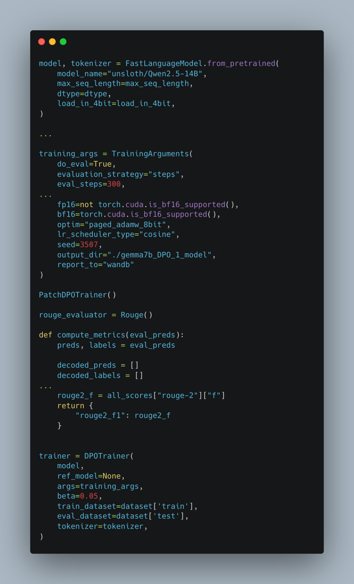 DPO 학습코드 일부